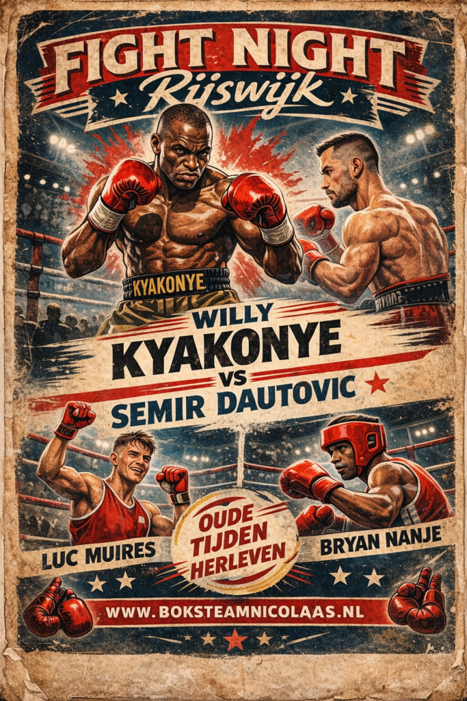 Voor Willy betekent deze avond een cruciale eerste stap richting de World Boxing Council wereldtitel in het Bridgerweight. Tien rondes. Volle focus. Geen omwegen. Dit is het begin van een traject naar het hoogste podium in de bokswereld.